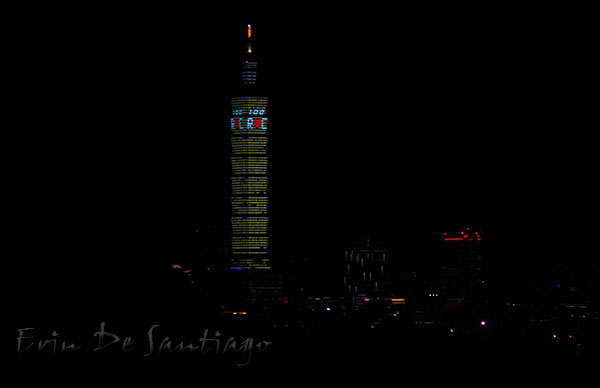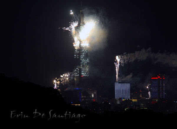 Rather than shoot a lot of fireworks off the sides of Taipei 101 as they’ve done in the past, they lit up the building with smaller fireworks.