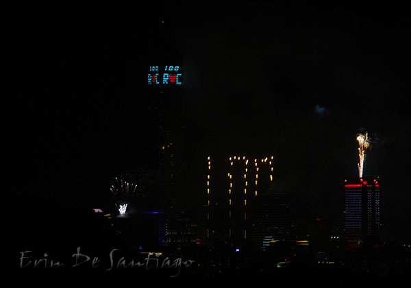 After the fireworks had ended, Taipei 101 changed the lighting to read “ROC 100” on the side to represent Taiwan’s 100th year anniversary. I believe it’s on display through the upcoming Chinese New Year celebrations.