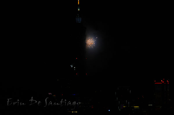 After Taipei 101 came alive in color, we believe the next set of fireworks was the “dragon” that was to snake around Taipei 101. Based on our direction from 101, we might have not seen much of the dragon itself.